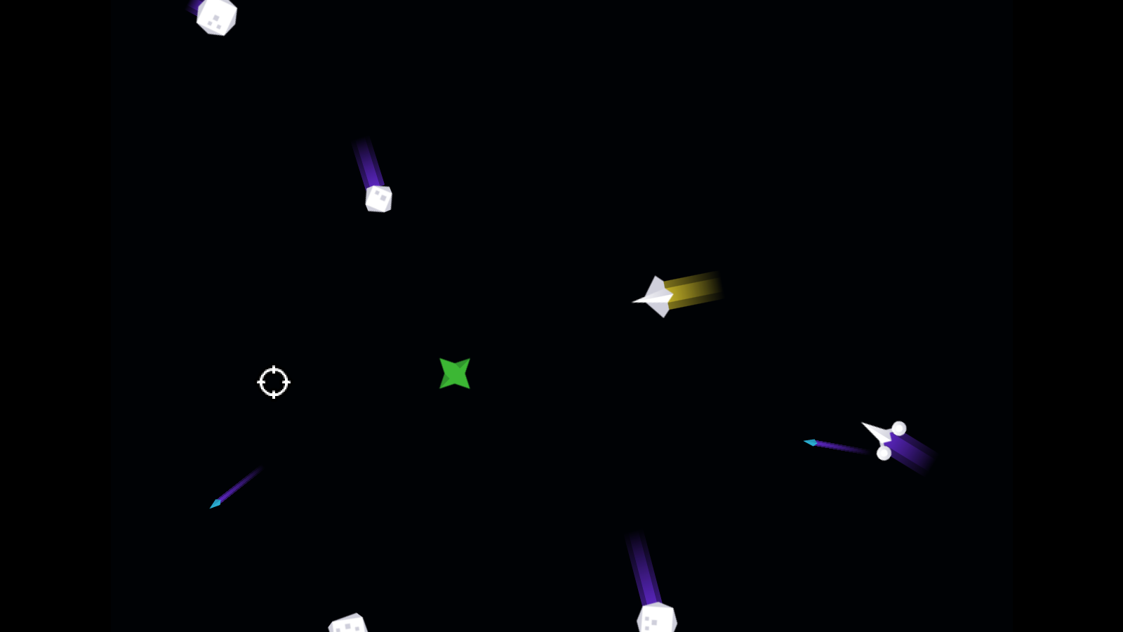 Fly around as a spaceship and defend yourself from floating meteors and enemy spaceships by shooting them!